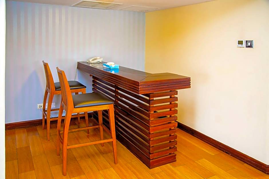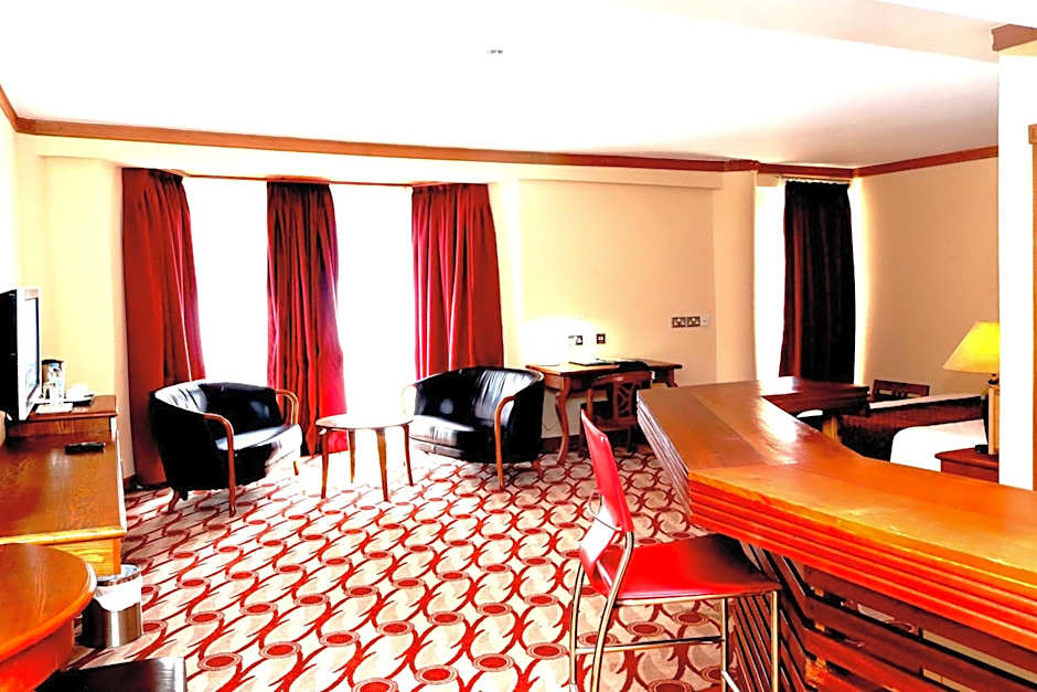 This spacious suite features a seating area, flat-screen cable TV and mini-bar.